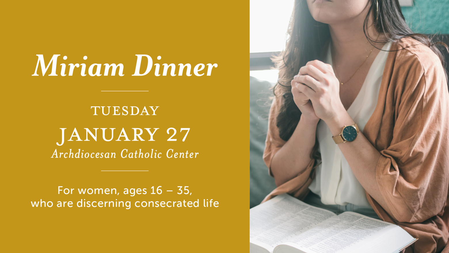 Dinner Invitation for Those Discerning Religious and Consecrated Life: The Archdiocese warmly invites you to join them for a special dinner and evening of fellowship. This gathering is a wonderful opportunity to share a meal, connect with others who are discerning, and learn more about the beauty of religious and consecrated vocations. See the Archdiocesan website for more details.